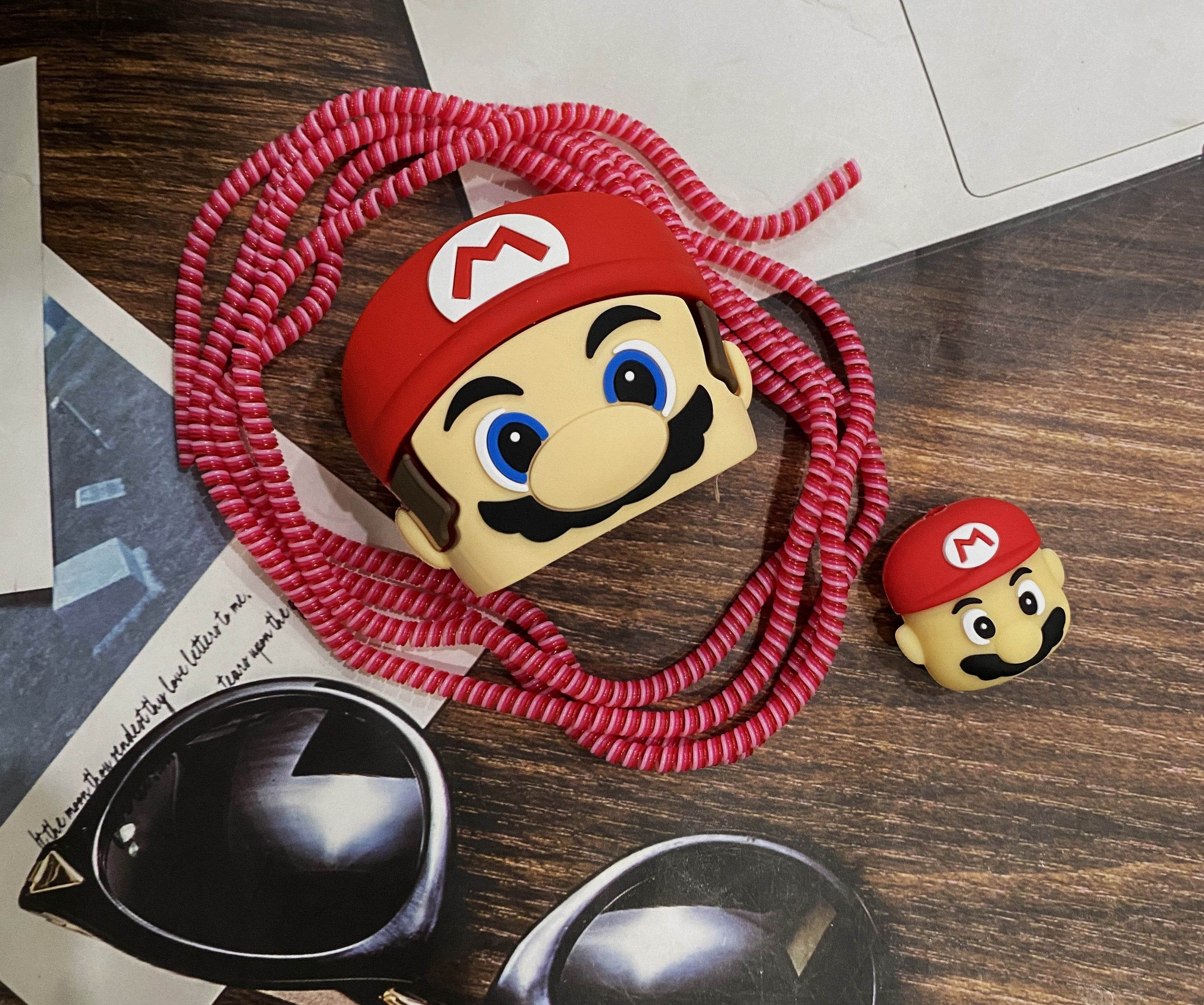 Silicone Cartoon iPhone Charger Case Cover for 18-20W Chargers - Red Cartoon M ( With Wire Cover )