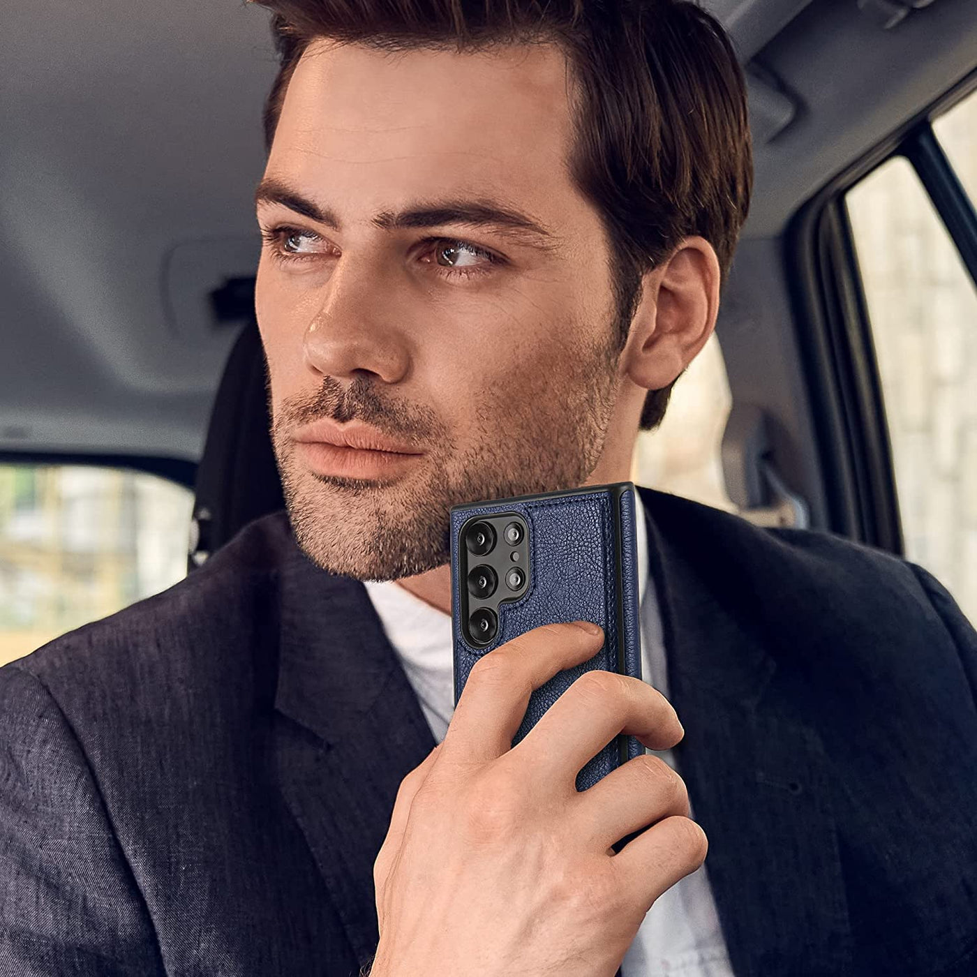 Premium Leather Logo Cut Back Cover -Blue - Samsung Galaxy S24 Ultra