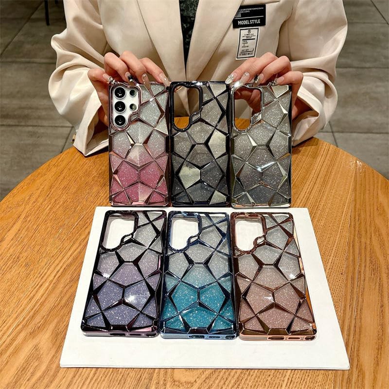 Gradient Glitter Electroplated 3D Cube Diamond Back Cover - Purple