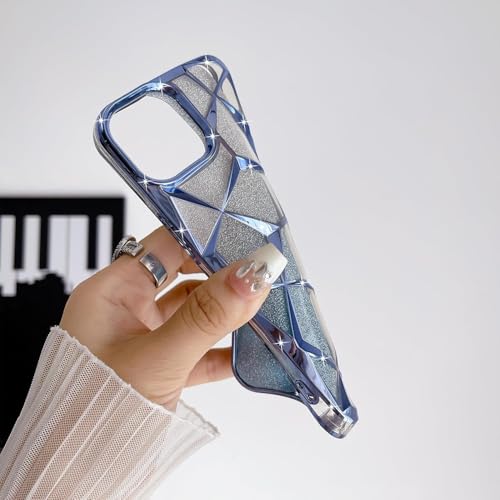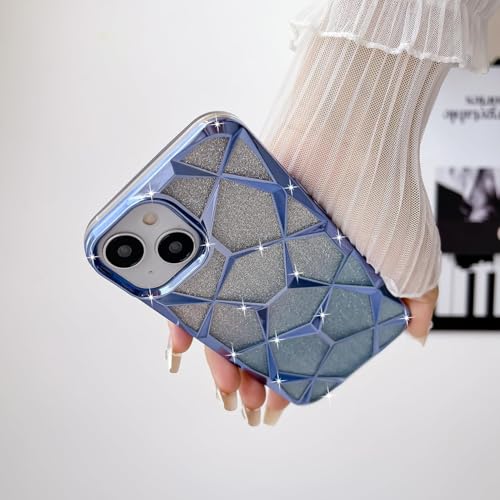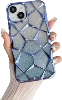 iPhone 15 Gradient Glitter Electroplated 3D Cube, Diamond Back Cover - Blue