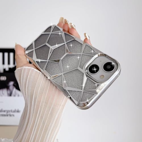 iPhone 15 Gradient Glitter Electroplated 3D Cube, Diamond Back Cover - Silver