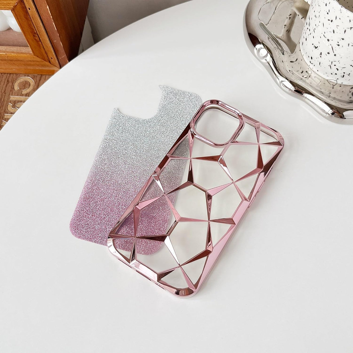 Gradient Glitter Electroplated 3D Cube, Diamond Back Cover - Pink