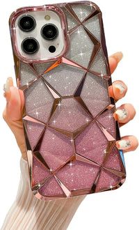 Gradient Glitter Electroplated 3D Cube, Diamond Back Cover - Pink - iPhone 15 Pro