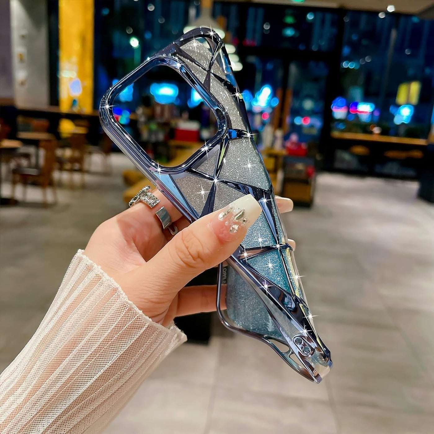 Gradient Glitter Electroplated 3D Cube, Diamond Back Cover - Blue