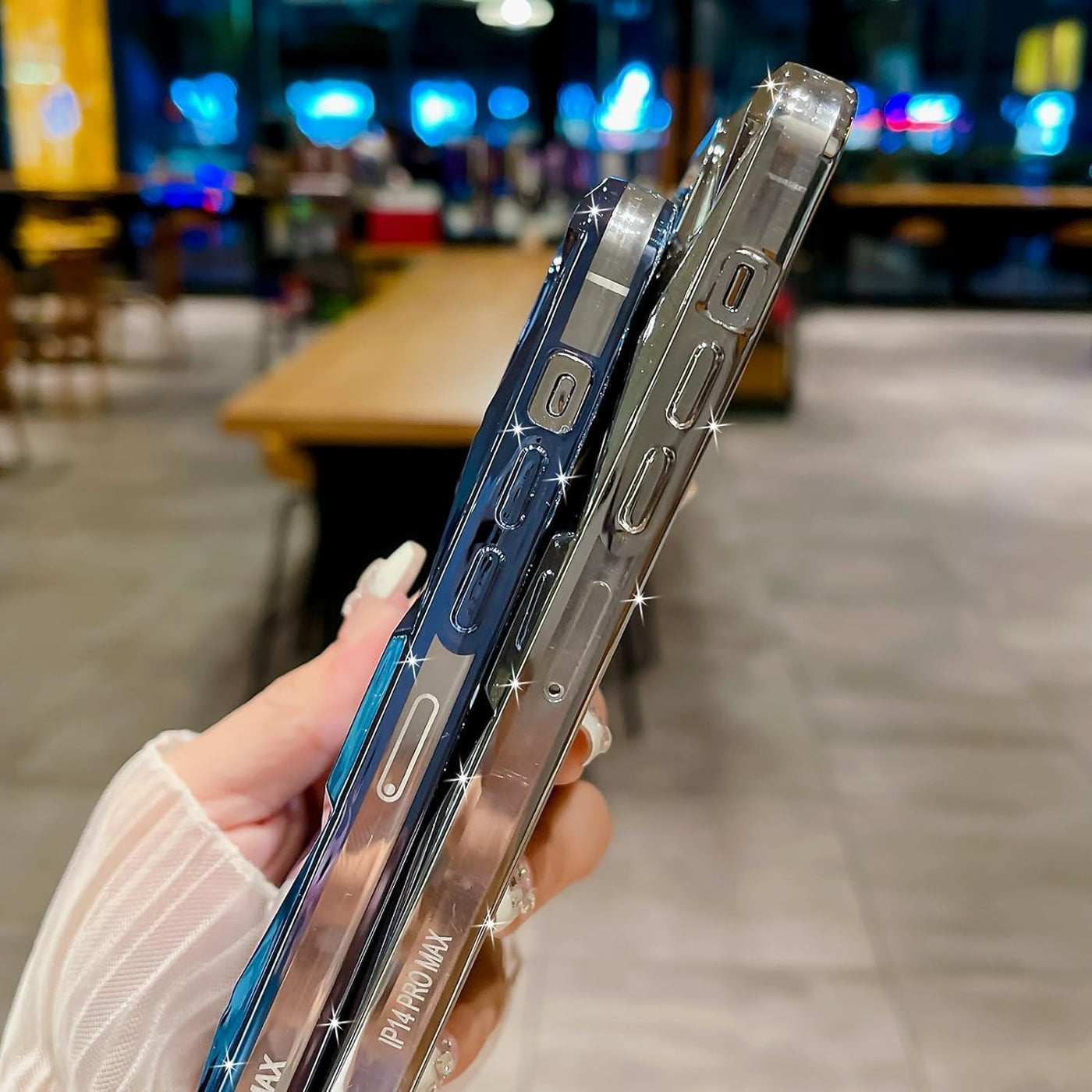 Gradient Glitter Electroplated 3D Cube, Diamond Back Cover - Blue - iPhone 15 Pro