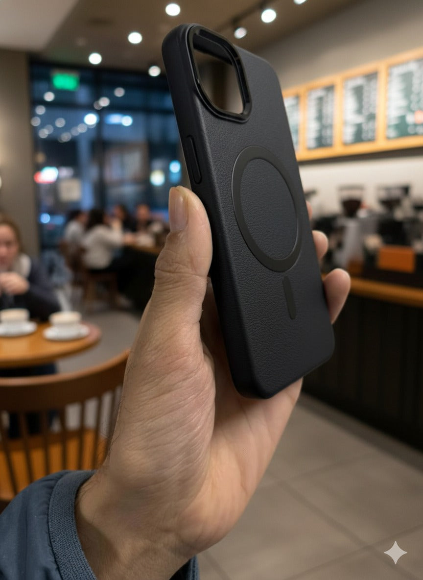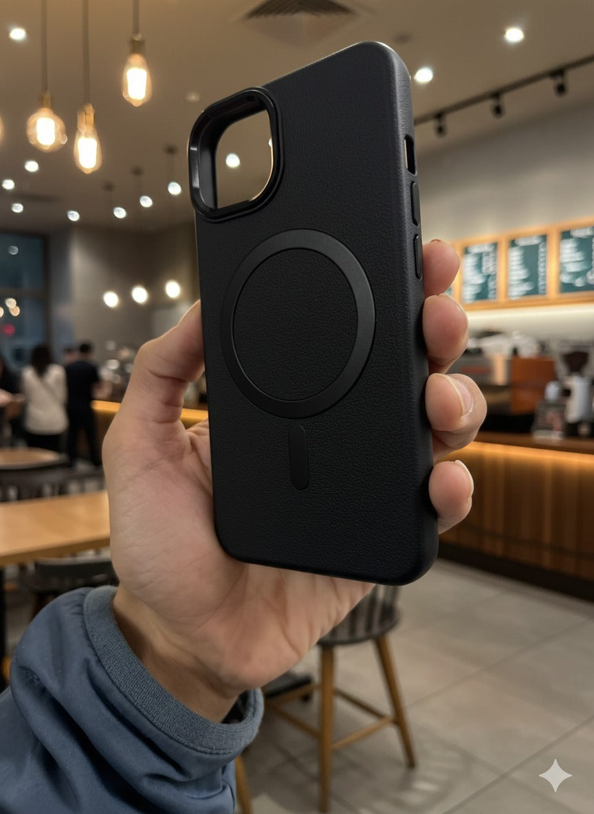 Premium Leather Finish Magsafe Case Cover- Black - iPhone 16