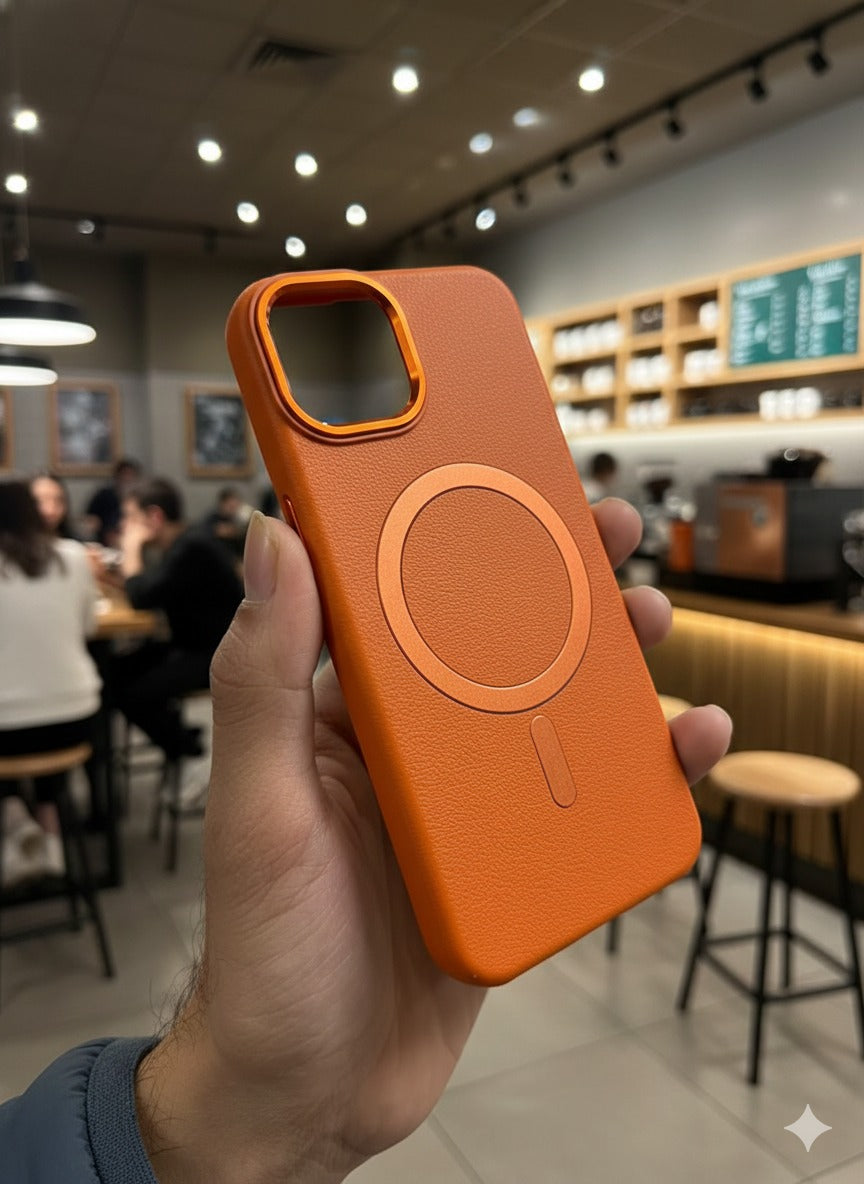 Premium Leather Finish Magsafe Case Cover- Orange - iPhone 16