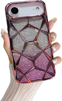 iPhone 17 Air Gradient Glitter Electroplated 3D Cube, Diamond Back Cover - Pink