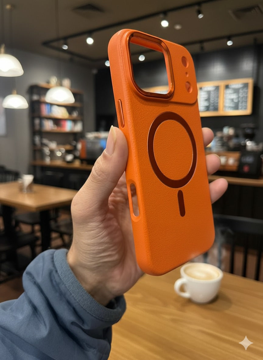 Premium Leather Finish Magsafe Case - Orange - iPhone 17 Pro