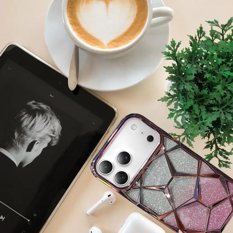 Gradient Glitter Electroplated 3D Cube, Diamond Back Cover - Pink - iPhone 17 Pro