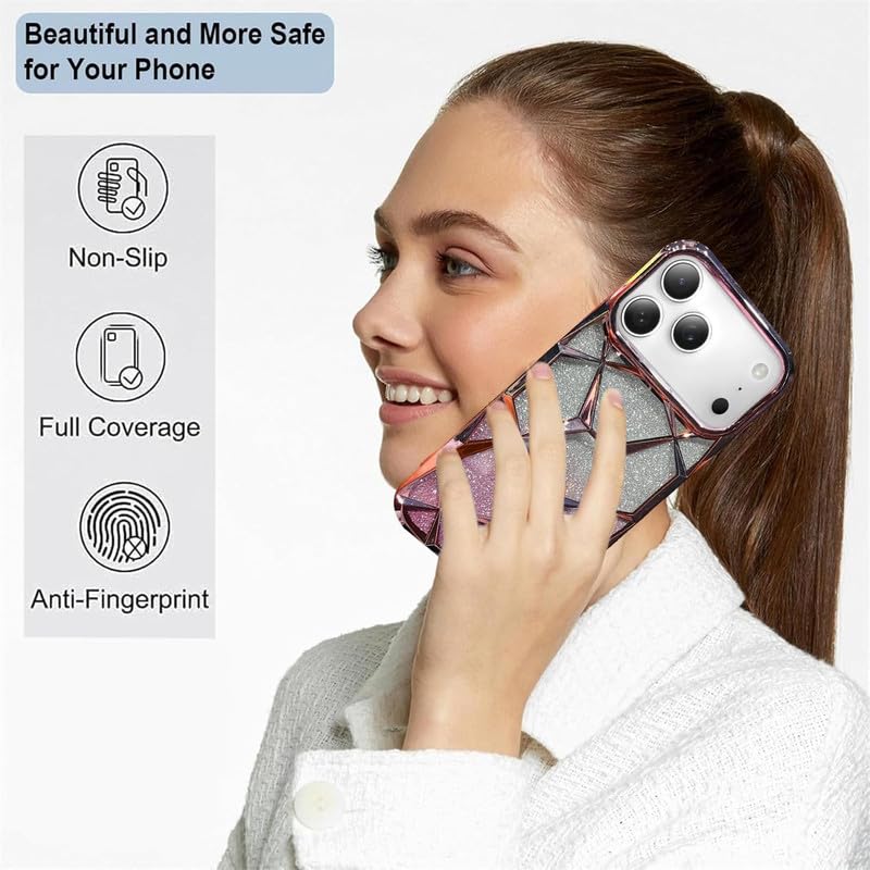 • ❥【Compatible with iPhone 】The Luxury Clear Glitter Bling Sparkly Shiny With Gradient Glitter Paper Aesthetic Elegant Shockproof Protective Phone Case Cover is ONLY Designed for iPhone 17 Pro,  iPhone 17 Pro Max Not fit for other phone models. Can Support the Wireless charging.