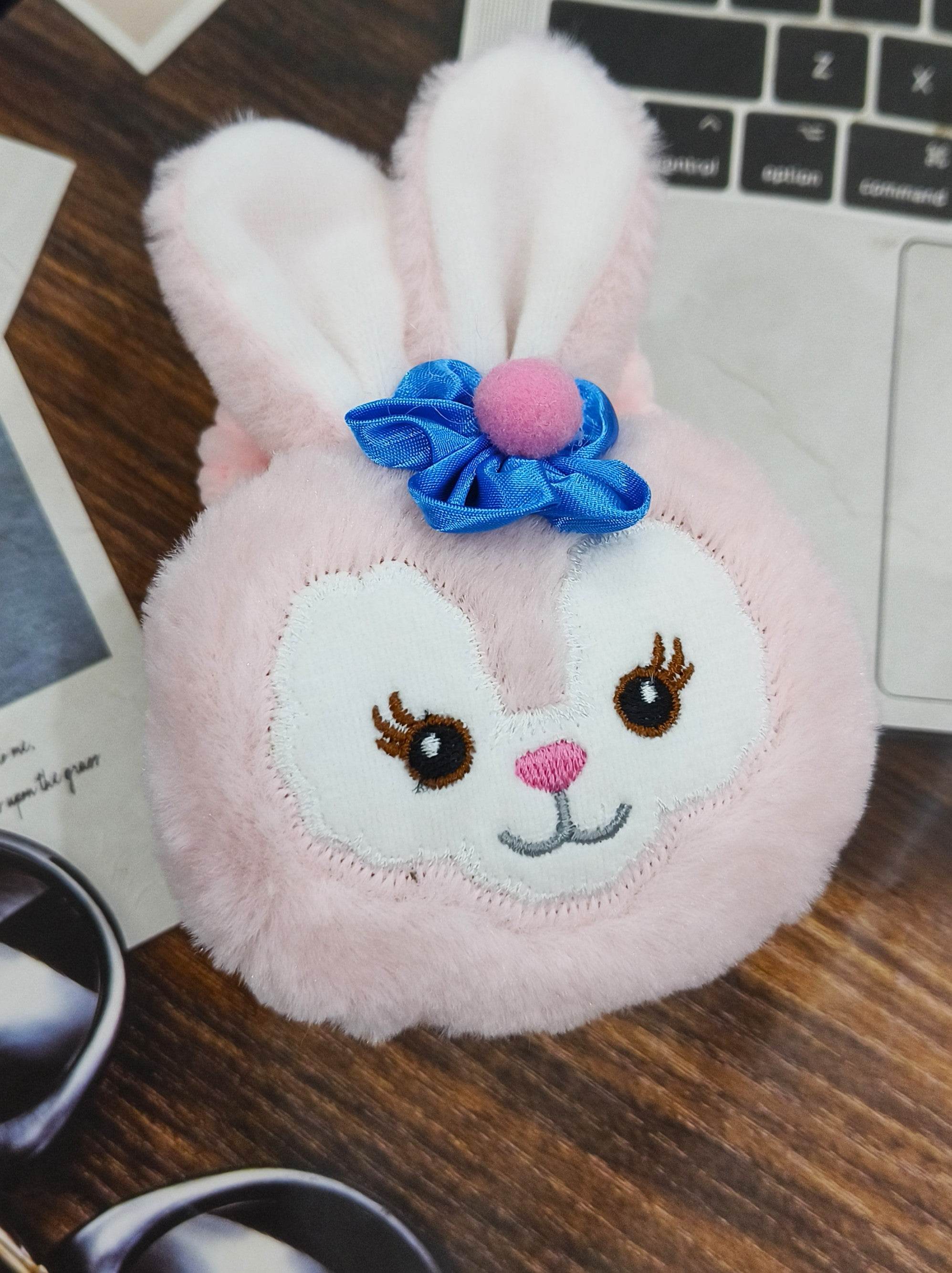 Universal Cartoon Accessories Crochet Bag Organizer Case Cover for Portable Charger, Cables, Earphone, Cord, SD Card -Furry Rose Gold
